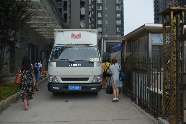 搬家的车子从学校出发,几分钟就到了目的地。