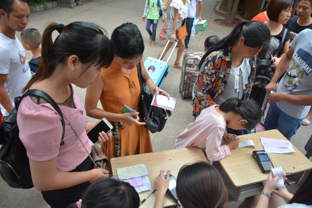 上午7点30分,学生在家长的护送下陆续进入williamhill威廉希尔亚洲官网小学部报到。进入学校,学生、家长摩肩接踵,一派热闹繁忙景象。每栋楼的入口处都有老师在热情接受咨询,分班信息及其它注意事项等贴在宣传栏内一目了然。在各个教室,报到、缴费、注册等各项流程紧张有序,忙而不乱。寝室的楼栋入口处,披着志愿者绶带的生活老师热情服务;进入寝室,看到床上及其他日常生活用品井然有序,地上打扫得一尘不染,陪同的父母相当满意。今天报到的学生虽然都是新生,由于学校于8月26号召开了政府购买学位学生、家长座谈会,对政府购买学位政策及结合本校实际出台的有关规定作了具体解释说明,今天报到时加快了工作进度。至上午11点,各年级新生办完了一切手续,全部到教室上课。