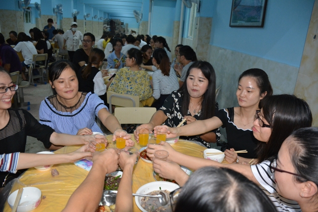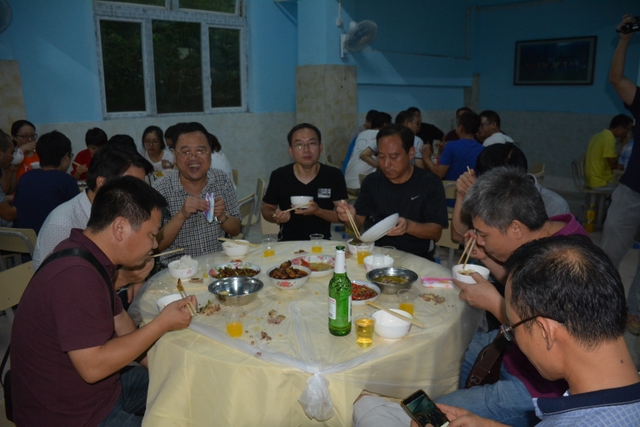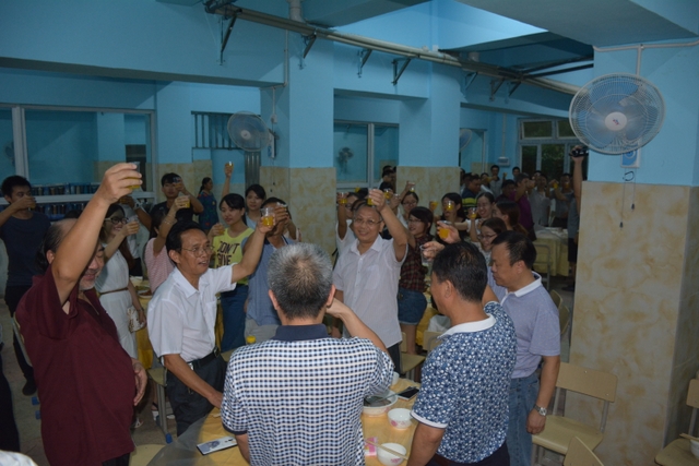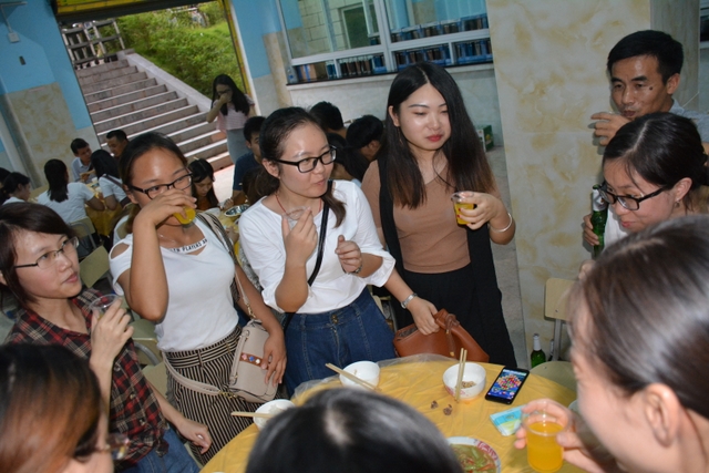 罗校长、陈副校长、工会主席陈斌、人事处主任谭奇凤及各学部主任、年级主任与新教师合影留念。随后,到新食堂共聚晚餐,并给每人分发了校长从美国采购来的水杯及新教师红包。