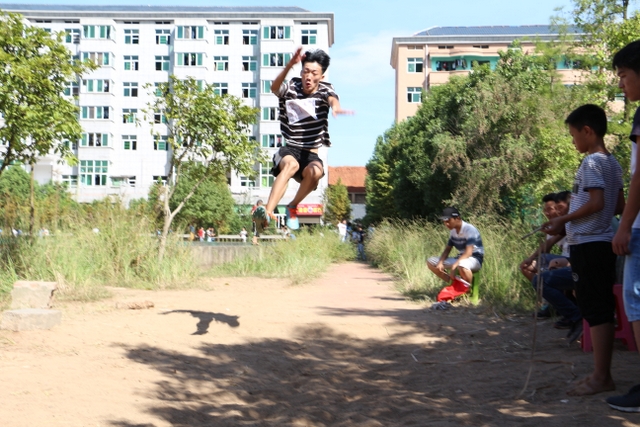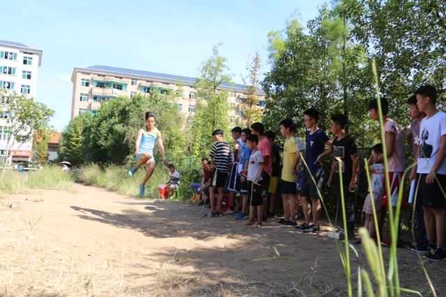 喜报(1)!初一男子跳远比赛,313班肖思颂同学打破纪录,再创佳绩。