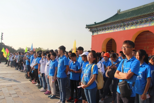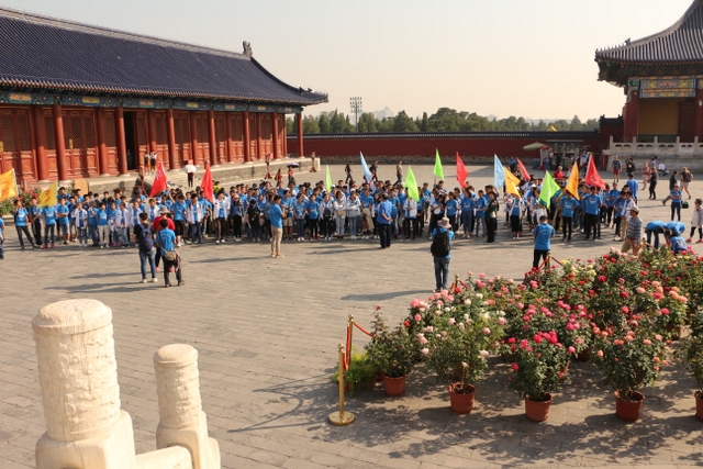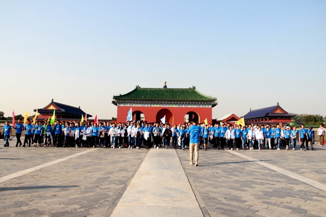 9月29日早上8点,williamhill威廉希尔亚洲官网2017年北京励志行团队抵达北京,正式开启了他们在北京的励志之旅,天坛公园即是他们北京之行的首站。