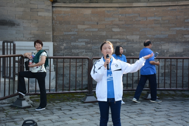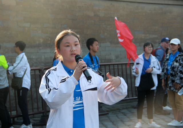 1707班的周娅是一名历史学爱好者。在天坛公园各景点,她对各景点的历史如数家珍,主动承担起小导游的角色。她说,参加此次北京励志行一定能收获满满,在天坛公园遇到了很多外国友人,通过与他们交流,不仅是锻炼了自己的英语口语,更是开拓了自己的眼界。