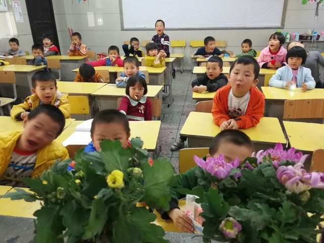 “采菊东篱下,悠然见南山”,秋天正是赏菊的最佳季节。孩子们通过观察菊花,了解菊花的外观、颜色,听老师讲解菊花的作用。