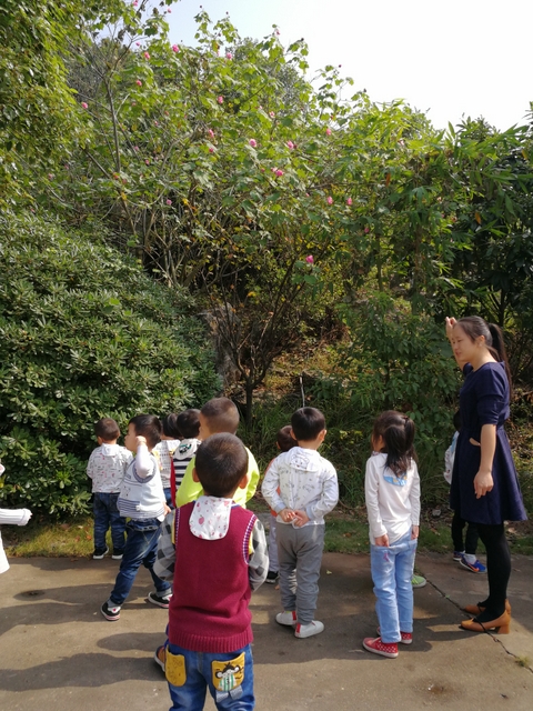 木芙蓉也是秋季开花。一天中不同时间,木芙蓉花的颜色都不相同。清晨是白色的,中午是粉色的,傍晚时深红色的。孩子们在观察木芙蓉后,奔跑于校园间寻找各处的木芙蓉花。