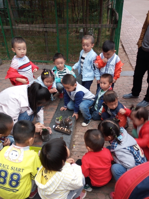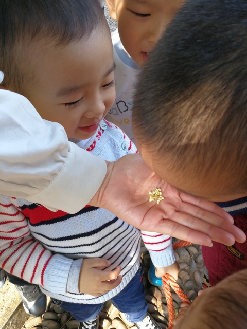 孩子们观察秋菊