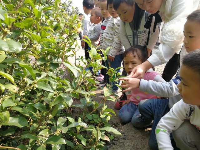 金秋十月,桂花飘香。校园里四处弥漫着秋天的味道。小朋友们闭上眼睛闻一闻:“老师,有点心的味道!”是啊,桂花不但可以用来做糕点,还可以用来煲汤、泡茶、泡酒。