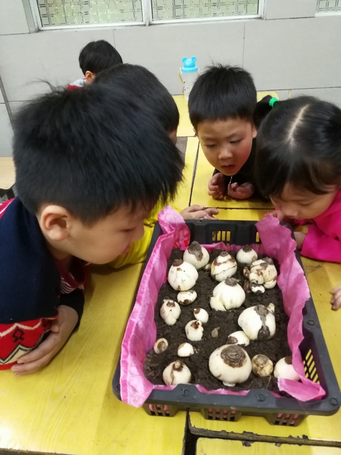 绘本阅读课《小种子》给大家有关生命的启蒙。我们还在科学课上种下水仙花。我们观察水仙的球状鳞茎,领养自己的水仙花,每天为它换水,盼着花期到。秋天开始养的水仙花,到了冬天就会静静开放了。