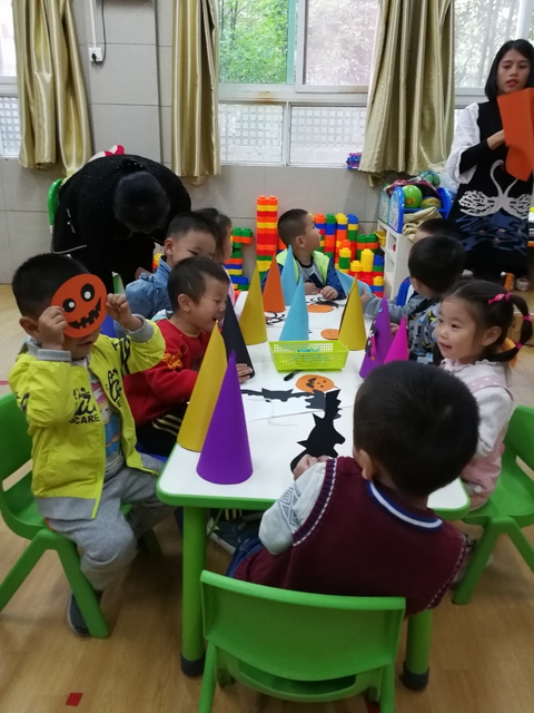 在这天,孩子们还亲手制作了万圣节的帽子。