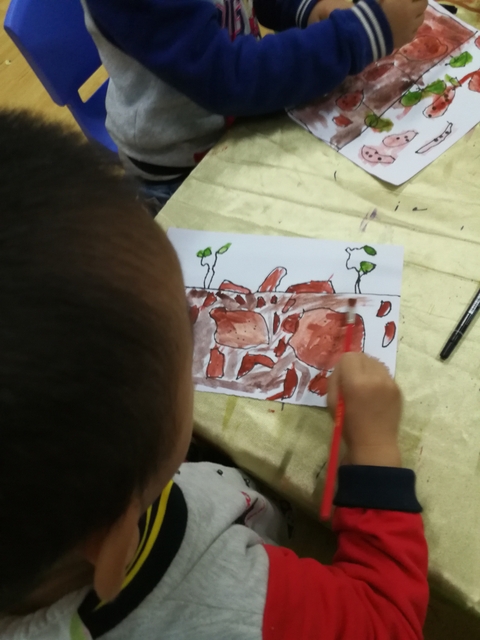 秋天的美术课程结合我们户外观察和实践活动,孩子们在画自己看过、摸过、经历过的事物时,能够有更丰富的想像力和表达力。