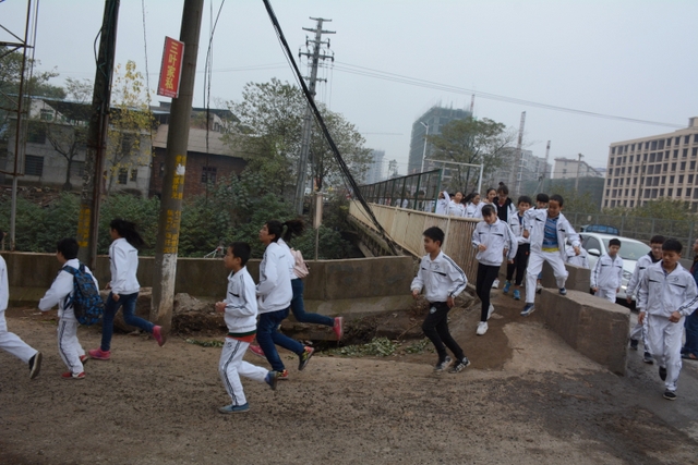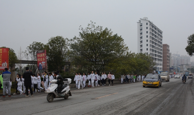 在前往目的地的路上,要经过不少车流量密集的路口,为了保证学生安全,学校老师一方面调度指挥,让学生能够以更快的速度过路口;一方面站在学生队伍外面,以身为墙,为学生们筑就一道安全长城。