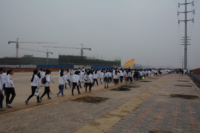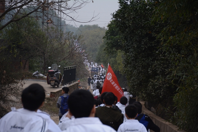 八点三十分,随着年级主任的一声令下,学生们冬游正式开始,各班在体育老师的指挥下依次走出校门。他们提着工具,脸上绽放着笑容。从高处望去,不断并进的队伍渐渐汇成一条雪白的长龙,向更前方蜿蜒而去,长龙连绵数里,向外界展示着正源学生的风采。