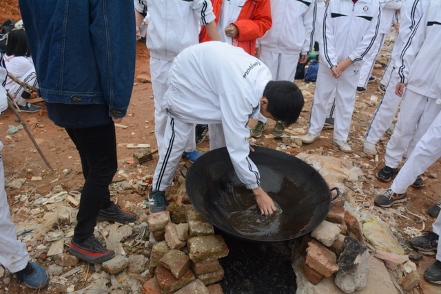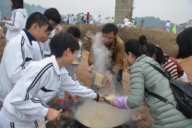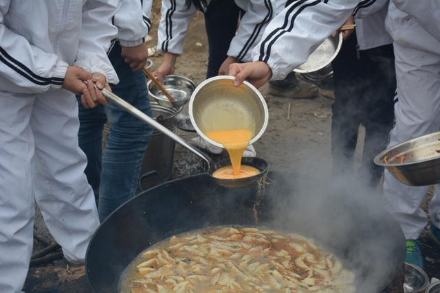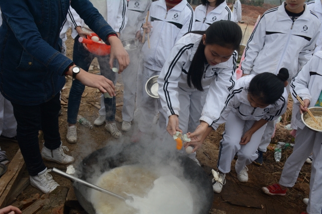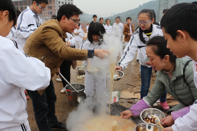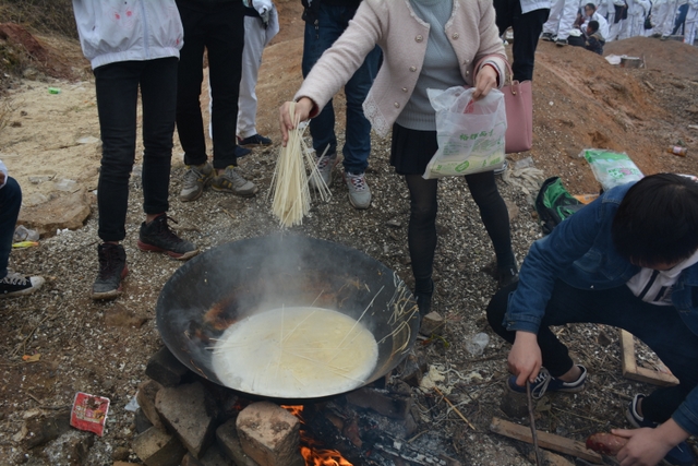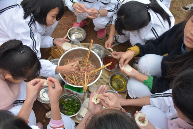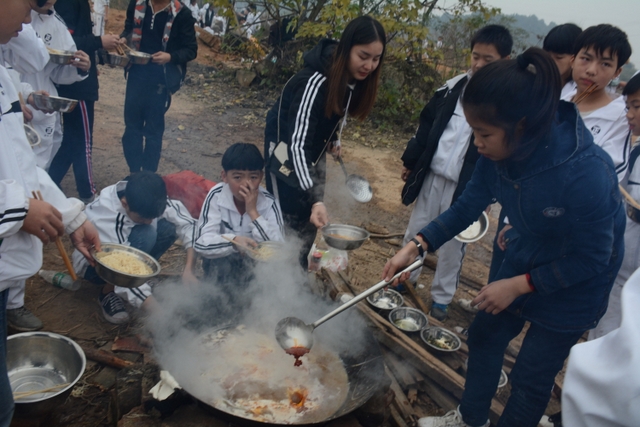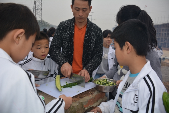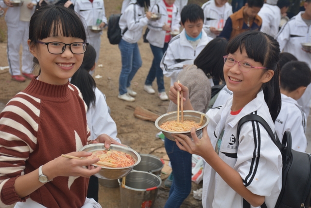 临近中午,大家终于来到了此次冬游的野炊地点——南岭仙山脚。此时在山脚下,早已有食堂工作人员等待着孩子们的到来,为他们派发野炊食材,孩子们凭票领取食材后,就按照事先做好的安排开始他们的工作,垒灶的垒灶,接水的接水……分工协作,共同参与,争取“人人有事做,事事有人做”。大施拳脚之后,孩子们开始品尝着属于自己的劳动果实,面条、饺子、炒菜……别看孩子年纪小,生活常识却不少,各项任务做起来,交口称赞长大了。鲜汤煮出爽口面,沸水浮上葱香饺,一口鲜面一口饺,入味香浓刚刚好。问他下次来不来,囫囵咽下说蛮好。