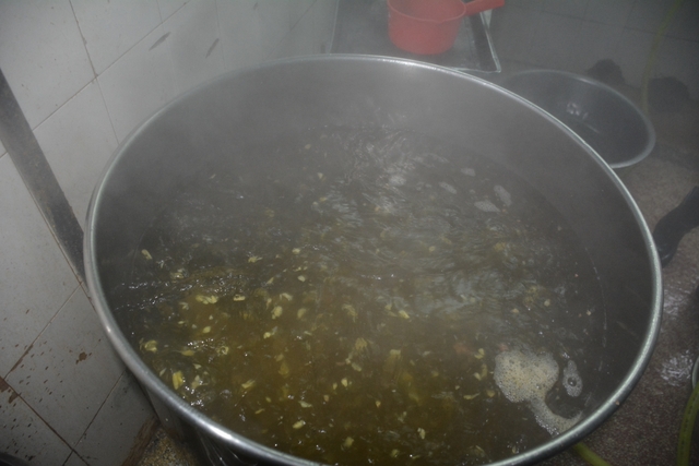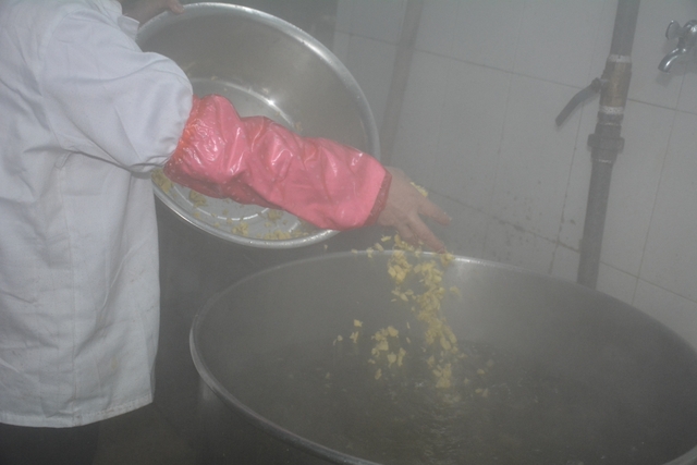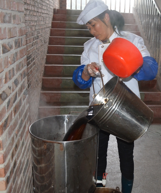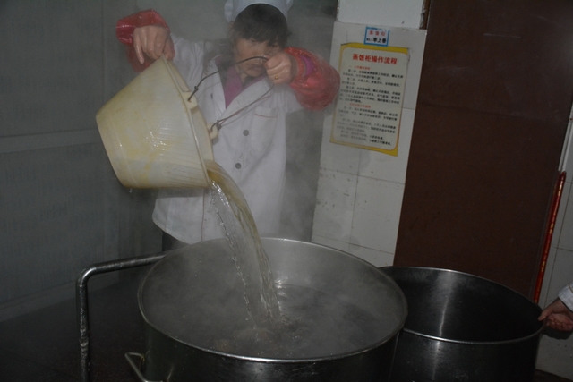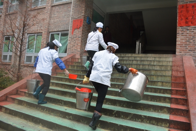 在今冬的第一次寒流来袭时,罗校长就及时安排食堂管理处切实做好为学生熬送姜汤预防感冒的工作。食堂管理处闻风而动,专门从衡阳购回2吨红糖,加上增购的生姜,分发到各食堂。食堂按照要求,学生早餐完毕,即安排工人将生姜切成颗粒熬煮,加放红糖,上午课间操时间送到各年级教室,分发给学生饮用。每个学生一次大致要喝3--5两,每天全校要熬五六千斤姜汤,学生一连喝了一个星期。高三学生上晚自习的时间长,夜里天气更冷,气温更低,患感冒的几率更大一些,所以四食堂主任梁山陶说:我们食堂姜汤要熬得更浓一些,量也更大一些。这一次,从12月13日起,各食堂又开始了熬送姜汤。
