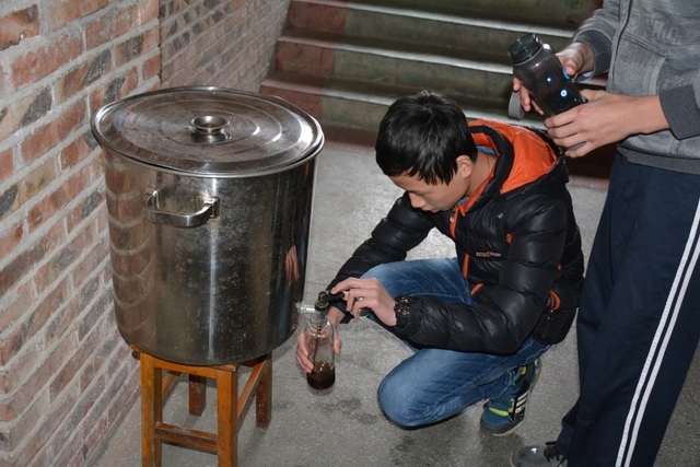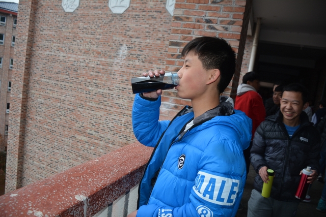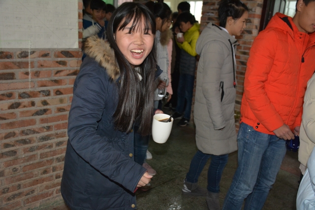 笔者走到五六号教学楼,拦住几个学生,一问,初三年级的。问他们喝过姜汤没,都回答说:喝了,好暖和的。问他们班有没有感冒的,回答说:没有。