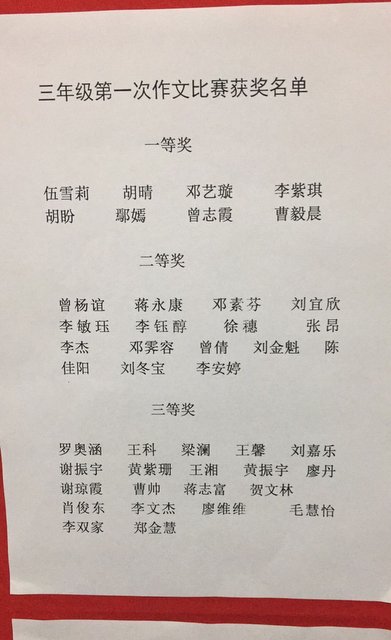二等奖(15名):曾杨谊、蒋永康、邓素芬、刘宜欣、李敏珏、李钰醇、徐穗、张昂、李杰、邓霁容、曾倩、刘金魁、陈佳阳、刘冬宝、李安婷。