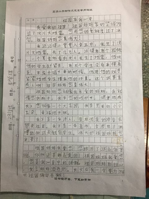 祖国在我心 作文抒我情—--三年级“祖国在我心中”作文比赛