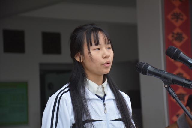 来自高三文102班的王莲莲同学做了脱稿演讲。她描述了高三学子争分夺秒,以梦为马的学习状态。高三的学习有痛苦,也有欢乐,但更重要的是高三学子身上“孩儿立志出乡关,学不成名誓不还”的雄心壮志。通过她的演讲,展示了高三学子逐鹿高考的自信与决心。