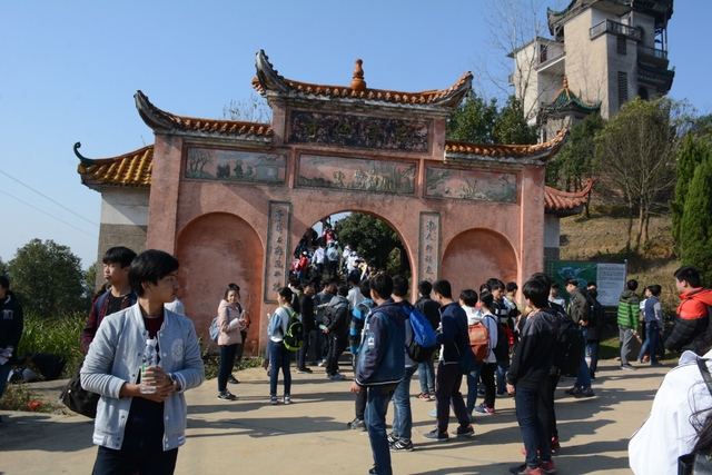 中午11:30分,各班陆续到达南岭仙。登上山顶,有些同学远眺高铁西站,金谷水郡,顺湖风光;小山藏古寺,有些同学结伴进入大殿,求佛保佑家人平安,自己来日金榜题名;有些则闲散地坐着休息。