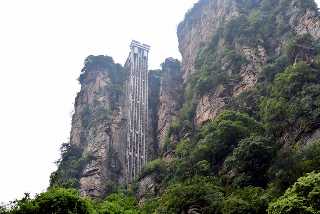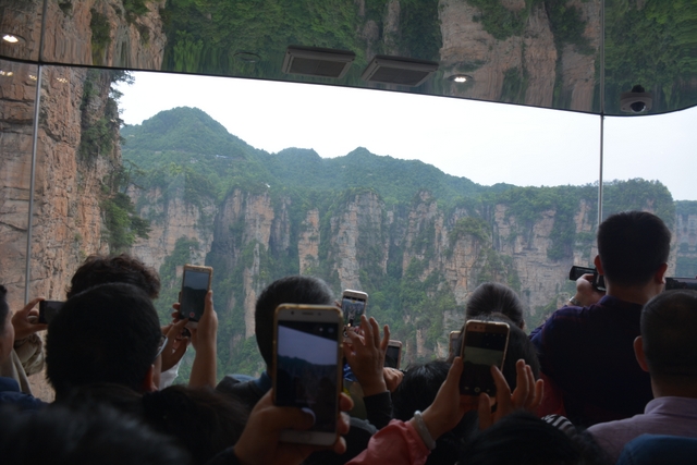 我们乘坐“百龙天梯”快速电梯直至袁家界顶峰,高速电梯让大家感受了一番袁家界别样风景。
