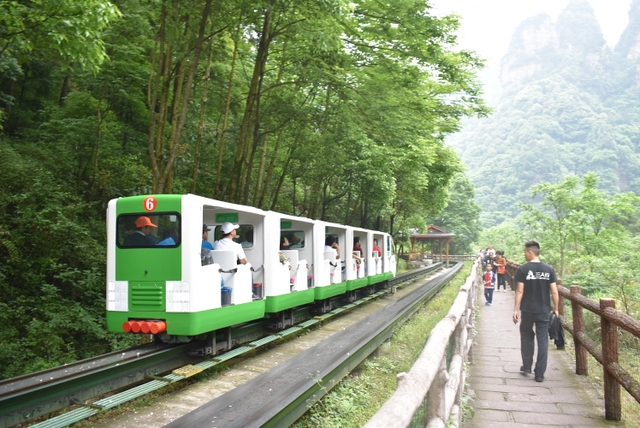 下午3时许,游览完天子山景区,部分老师直接坐缆车下山,感受穿越丛山峻岭。所谓的十里画廊景区,说是画廊,其实是一条长达十里的大峡谷,人走在峽谷里,两侧风景如画,所以称之为画廊。