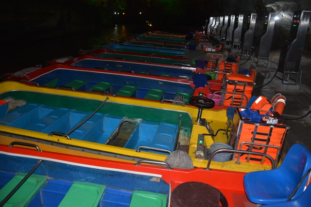 让我们一百多号人最难忘的是,在洞中,我们体验了神秘刺激的乘船漫游地下河。