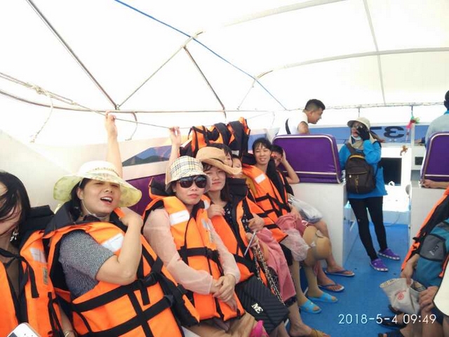 老师们意犹未尽,然而更多精彩却在后头。他们坐飞艇,前往金沙岛。高昂着头,轰隆着尾,小飞艇劈波斩浪,飞珠溅玉,高歌猛进,呼呼有声。高速形成的波涛猛烈地击打着船身,产生阻力、起伏和颠簸,惊险而刺激。
