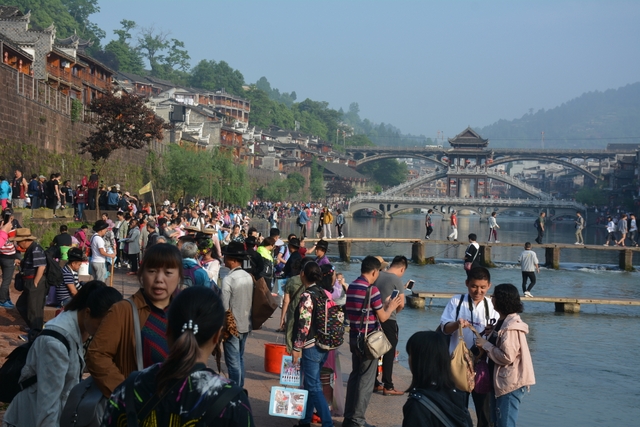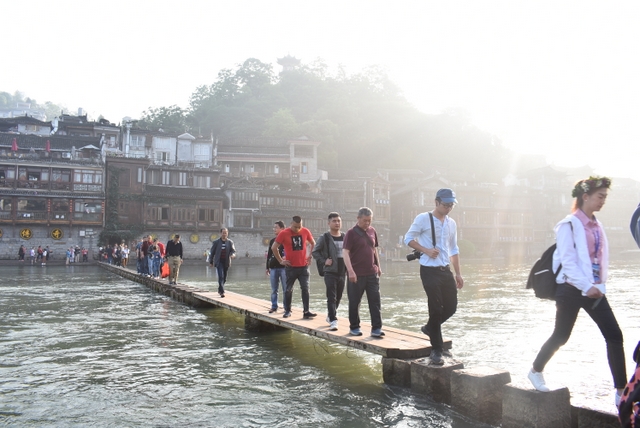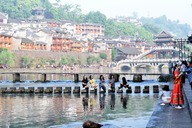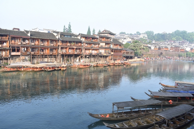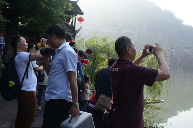 天气一如既往的好,无风无雨,偶尔有淡淡的太阳。导游说,欣赏凤凰古城,这天气还不算最好,下点小雨,那才是最好的。