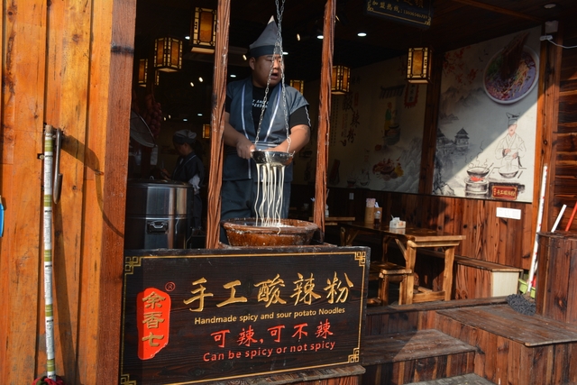 离开江岸,深入古城,景致更幽。石板小巷中,店铺林立,土酒、腊肉、姜糖,还有各种记不住名字的小吃,令人垂涎欲滴。街边的小摊,多是上了年纪的手艺人,或绣花,做荷包鞋子,或加工朱砂,做吊坠牌牌,见了游人,也不急着做生意,你不问,他只自顾做自己的手工活,一脸的安详。