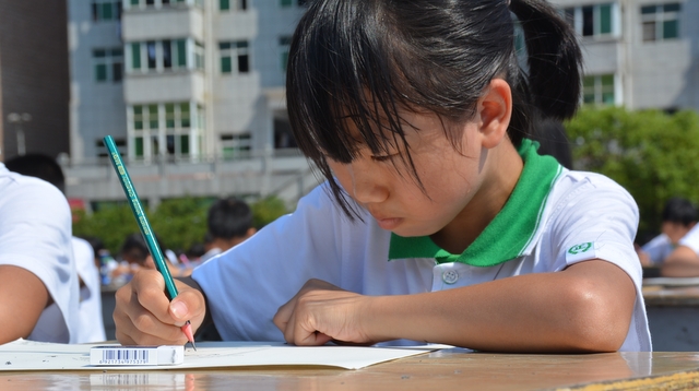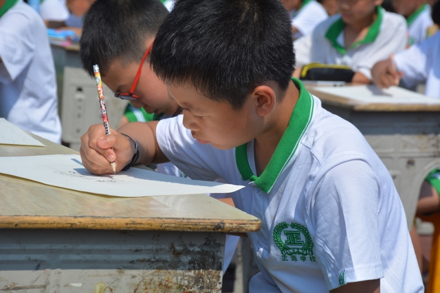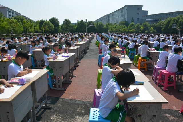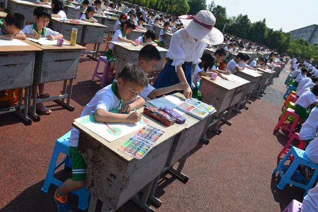 此次比赛共1000人参加,其中一年级100人,二年级125人,三年级175人,四年级225人,五年级275人,六年级100人。在绘画现场,孩子们用手中的画笔展示着自己的绘画才能,尽情地抒发自己对艺术地理解与创作。比赛持续了一个多小时,在烈日炎炎之下,孩子们头上、背上、手心都冒汗了,就连桌上地蜡笔也有点融化了。尽管如此,他们依然坚定地拿着彩色笔,把作品完成,他们地这份毅力,这份坚持,凸显他们对艺术的热爱。