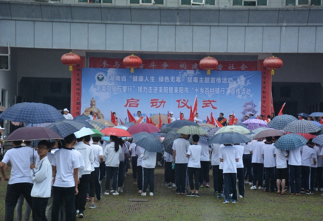 6月5日,由省禁毒委员会主办的“健康人生 绿色无毒”禁毒主题宣传活动——“无毒驾驶万里行”接力走进耒阳暨耒阳市“十乡百村骑行”宣传活动启动仪式在我校举行。市委副书记、市禁毒委主任、市长李向阳宣布活动正式启动,市政府副市长、市禁毒委常务副主任、公安局长邓朝晖致辞,政协副主席高爱民主持仪式。