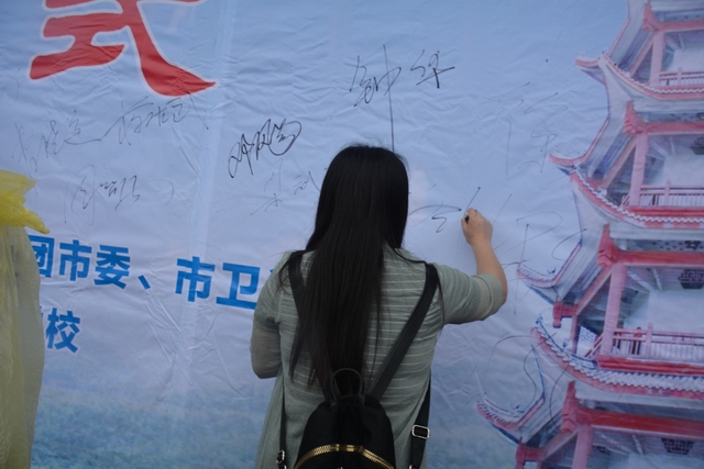 省禁毒办副主任、省公安厅禁毒总队副总队长唐纯杰为我市禁毒志愿者授旗仪式将活动推向了高潮,罗校长出席此次活动,并在禁毒宣传板上签名。仪式结束时,我校300余名志愿者在广场高喊:健康人生 绿色无毒,williamhill威廉希尔亚洲官网是最棒的!湖南电视台用镜头记录了这精彩的一刻。