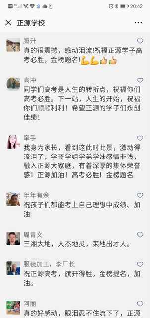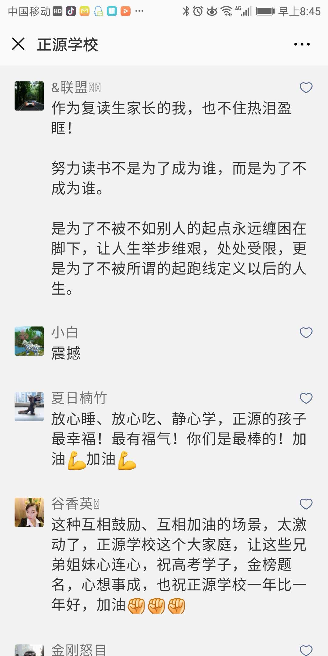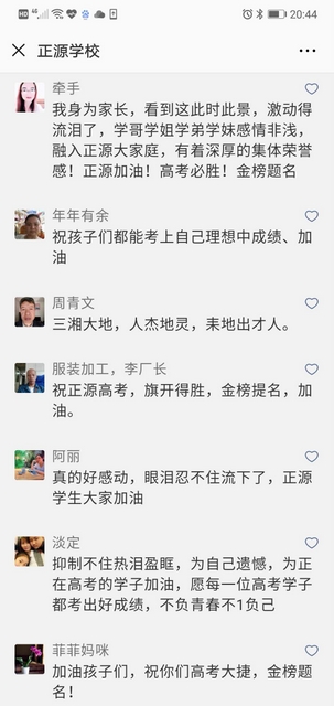 我身为家长,看到这此时此景,激动得流泪了,学哥学姐学弟学妹感情非浅,融入正源大家庭,有着深厚的集体荣誉感!正源加油!高考必胜!金榜题名