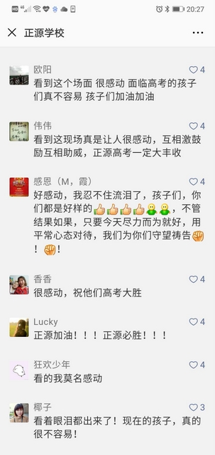 看到这现场真是让人很感动,互相激鼓励互相助威,正源高考一定大丰收