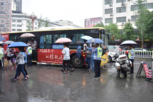 第一场考试顺利结束,可是瓢泼大雨还在继续!考生如何回校午餐午休?下午如何按时赴考参考?紧接着几天的高考和高二学考如何顺利完成?