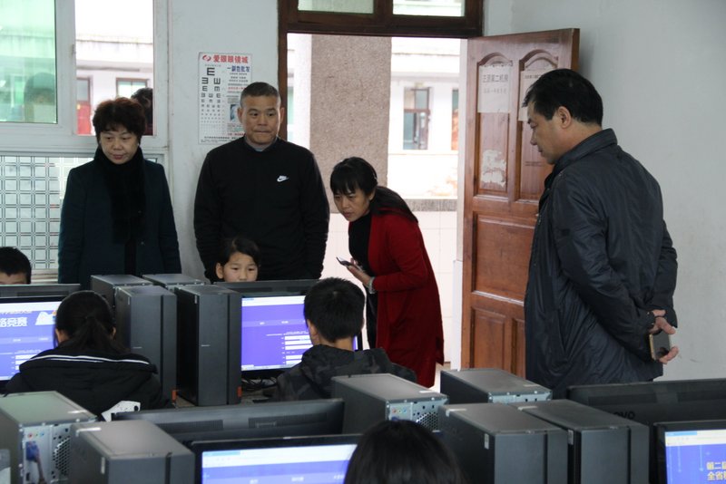 下午3点,市科协党组书记、主席徐冬开,副主席张维,主任科员邹鸿生,市教育局基教股伍勤林一行来我校计算机教室现场指导竞赛规则,校财务总监梁晓芬、校长助理蒋智敏陪同。