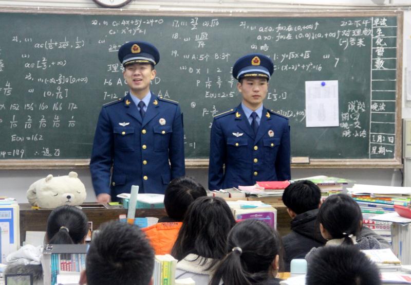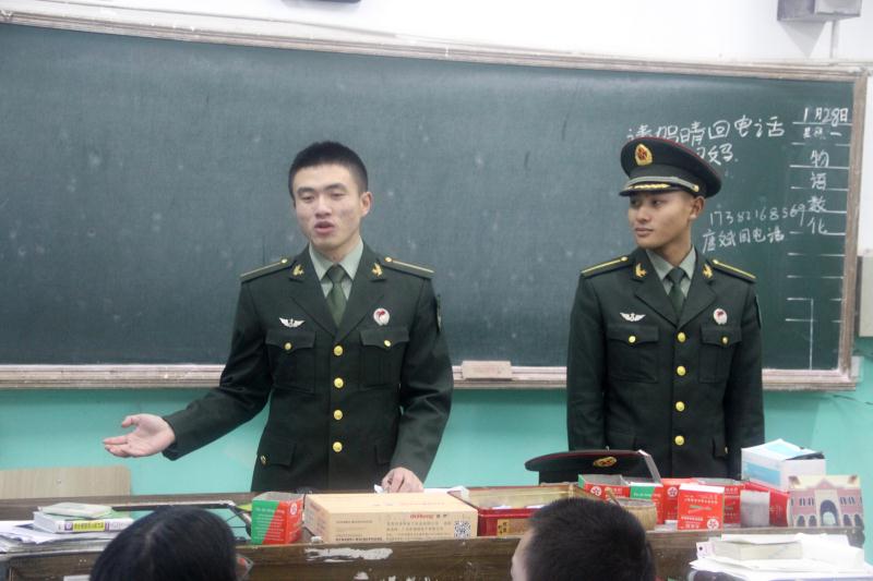 完成第一个任务后,五名军校学生继续执行学校指令,回母校给学弟学妹们讲讲考军校的“那些事”。晚上六点四十,罗威、文豪等五个兵哥哥兵分三路,分别走进高三教室和同学们面对面交流。面对帅气的学长们,学弟学妹们问起问题来锋芒毕露,毫不客气。从学习方法到军校体检要求,从近视眼能不能报名到现在学校生活好不好等等问题,从巨到细,从面到点一个都不放过。学弟学妹的激情一浪高过一浪,几个兵哥哥也是稳如泰山,一一回答,时不时还讲讲军校趣事,现场气氛活跃欢畅。