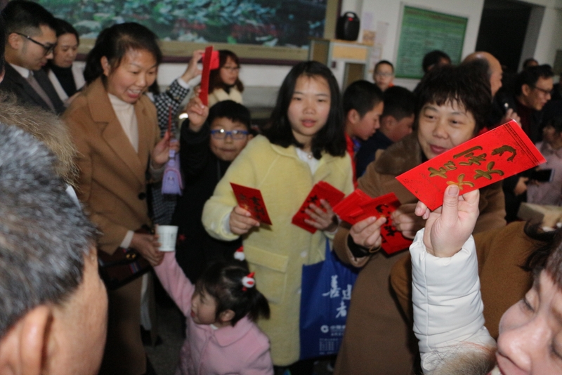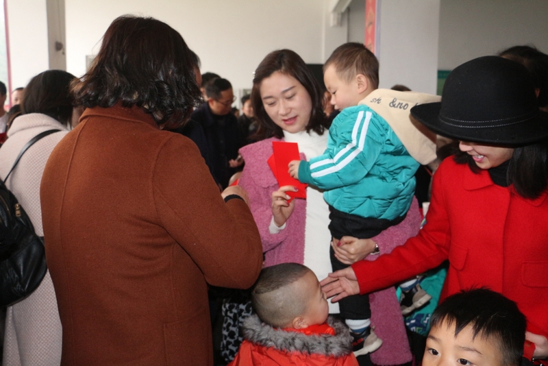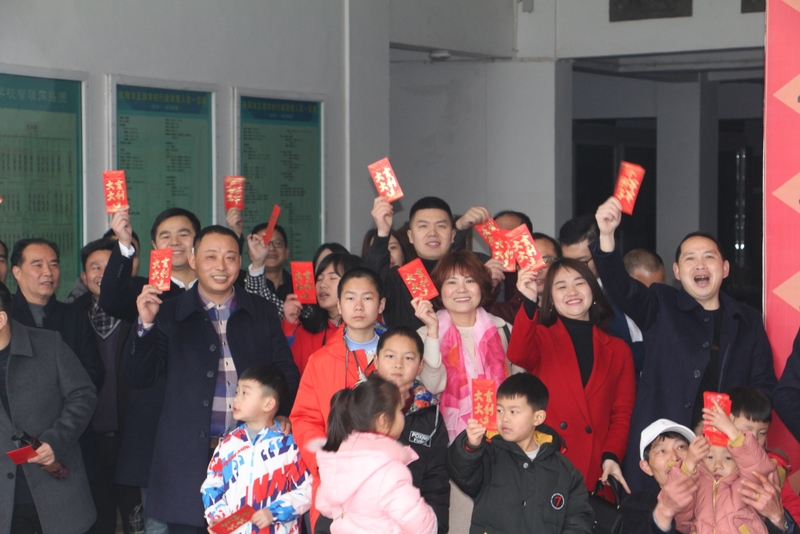 金猪送福,正源红火!随着人员越聚越多,负责红包的校长办公室人员立即组织加封红包!原本只需200个左右红包,今年居然发了332个。发红包的同时,大家互道新年快乐,喜气洋洋!