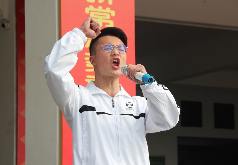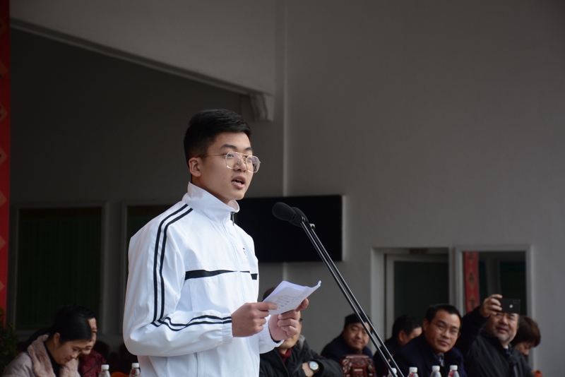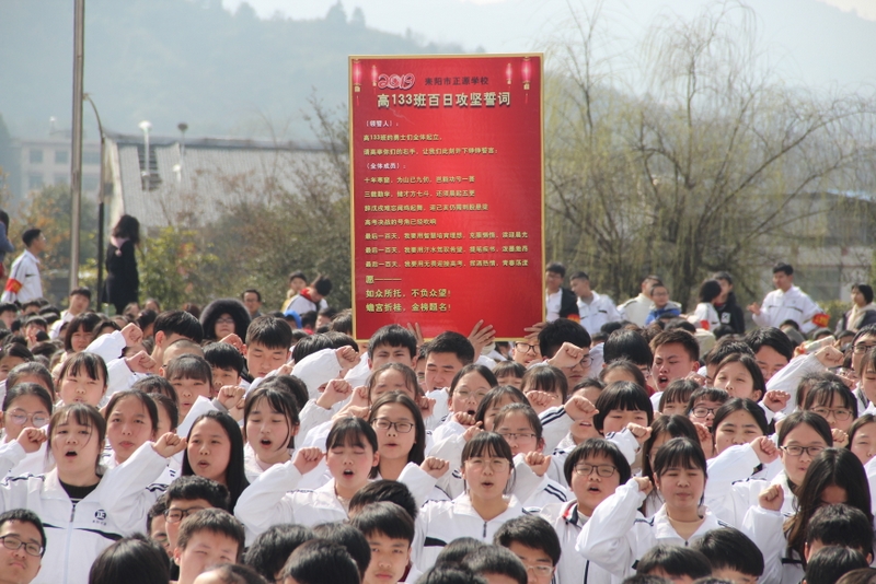 “亲人的目光、父母的期盼,他们在远方等待着我们六月的捷报,我们只有在这最后的一百天里奋发图强,才能不让辛苦劳累的父母们失望。决战100天,600分不是梦,重点大学不是梦,本科大学不是梦!”高三学生代表伍振旗发言如是说。
