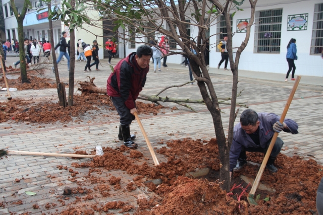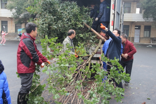 3月14日,williamhill威廉希尔亚洲官网十几名绿化队职工带着罗校长的殷殷嘱托,带着两车树苗,来到太平中学,开展义务植树绿化活动。