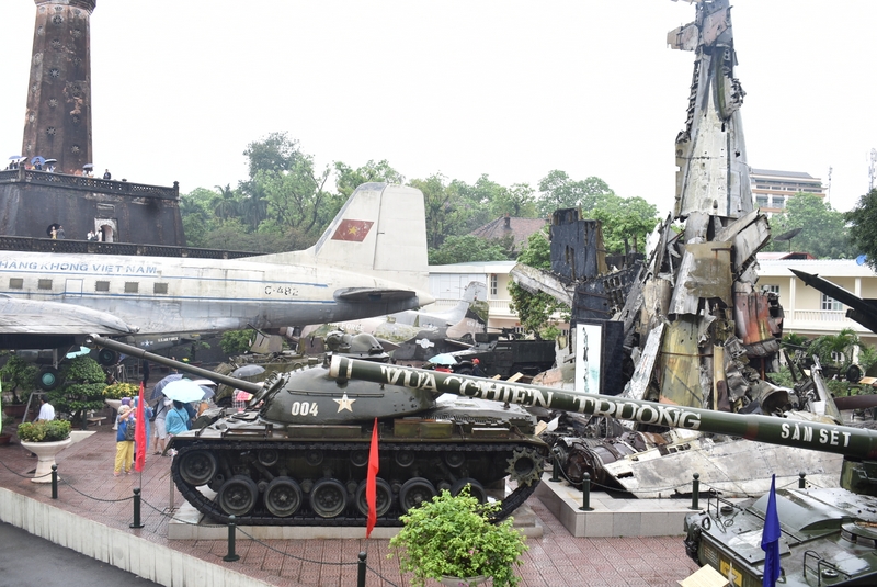 首先来到越南军事历史博物馆。这里,建筑内外储存和陈列着越南近现代史上作战使用过的各种枪支、火炮、坦克、飞机、导弹等,体现出越南历史以来就是一个饱受外国入侵的苦难民族。