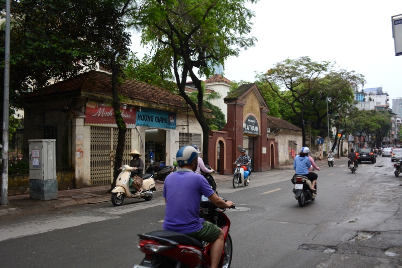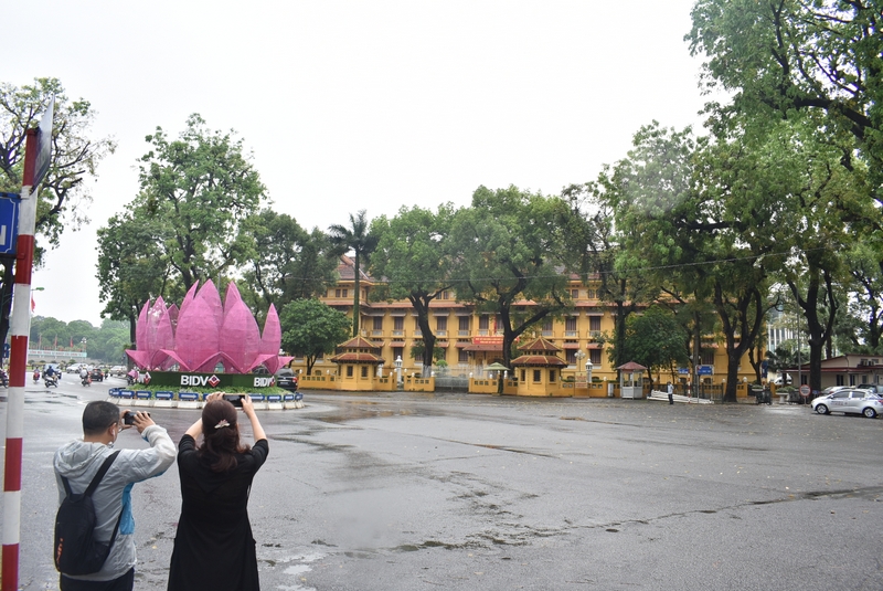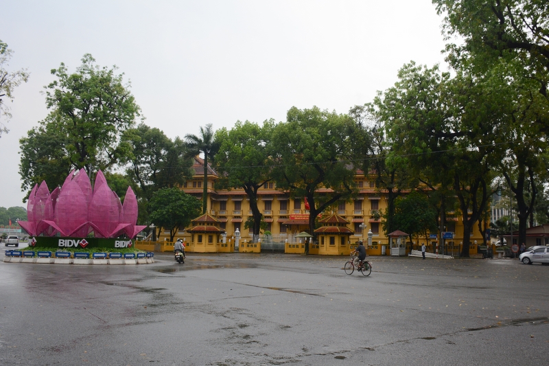 今天上午,下着间断小雨。正源大军坐车前往巴亭广场。途经中国大使馆。越南的黎导介绍说,从这条路一直到前面的那条路,整个全部属于中国大使馆,是所有外国大使馆中最大的。