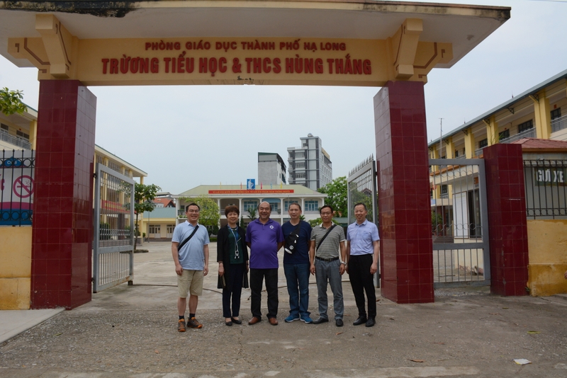 下午,正源大军告别河内,乘车经高速公路走往世界七大自然景观之一越南下龙湾。中途参观了一所公办小学。据黎导介绍,越南小学是五年制,免费教育,由于土地昂贵,校园面积都不大,这所学校连运动场都没有。但我们看到,校舍、课桌凳都还比较新,每个教室只有30到40个座位,也有微机室。