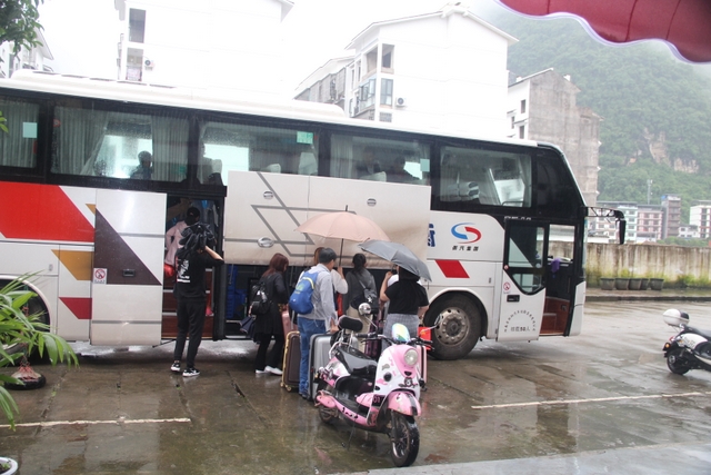 刚一下车,抬头望去,眼前就是一幅动态的水墨山水画卷,烟雨朦胧,薄雾轻饶,让人无不发出“葱茏屏列丹青画,恍惚峰飞伶俐人”的感慨。
