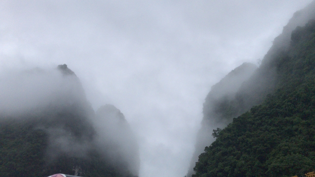 清晨醒来,才发现昨晚误认的“巨人”其实是一座距酒店仅百步之遥的高山。潇潇的烟雨,云雾蒙胧,轻薄的雾气弥漫其间,恍惚间,给人以穿越的感觉。