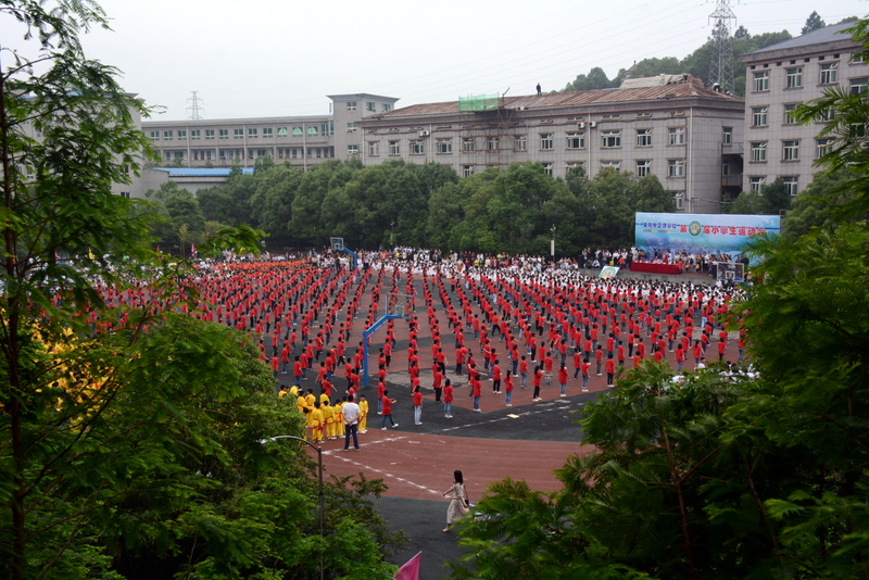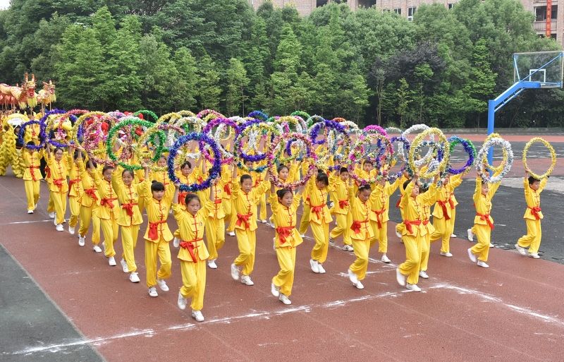 二年级833名同学表演《三字经》动作秀,一边做着各种武术动作,一边背诵“三字经”,文武并举,珠联璧合。