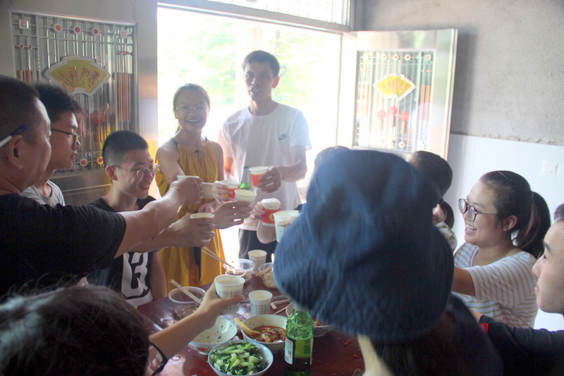 龙婷与父亲向梁总监等正源老师敬酒