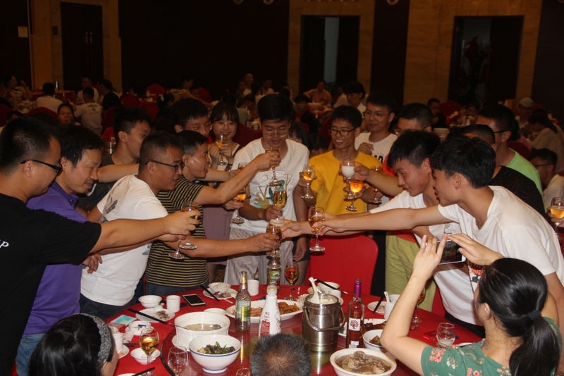 参加酒宴的同学一起向老师敬酒