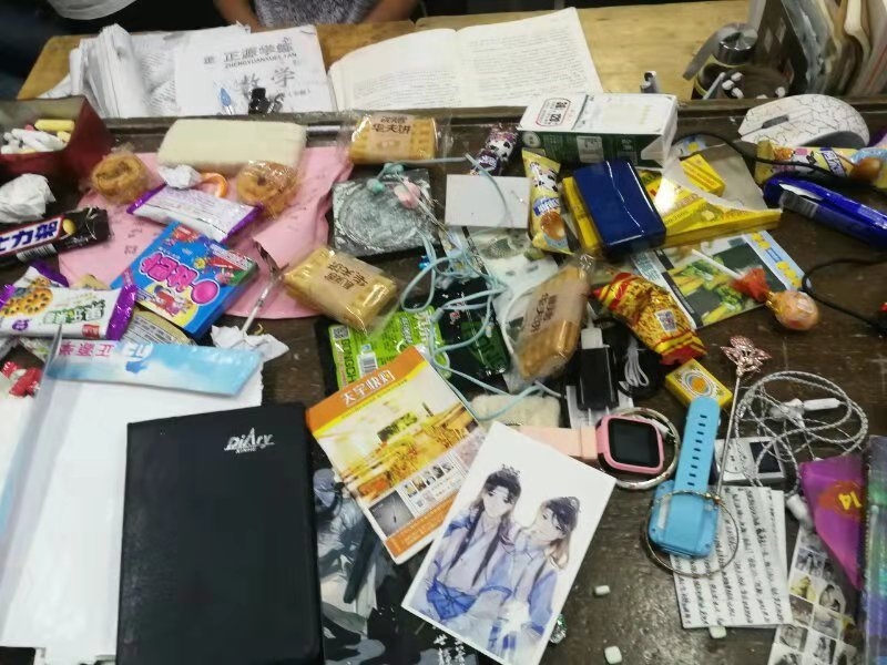 艺术部也同步进行了认真检查。伍中钺主任说,这次查获的违带物品数量比较少,比警示教育前少多了。上次的活动,对于我们的学生起到了良好的警示作用,希望这样的警钟要长期敲下去。