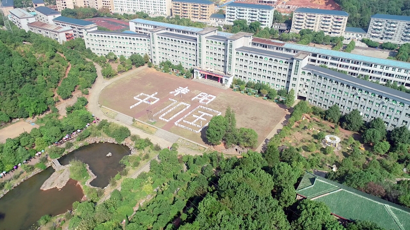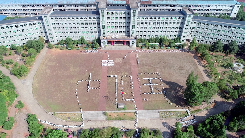 小学部六年级全体学生承担表演。雄伟的教学大楼做背景,宽阔的学校广场作平台,年级主任蒋飞组织学生从广场四周跑步进场,不一会“中国”“70”“耒阳”的造型完美地呈现在观众眼前。