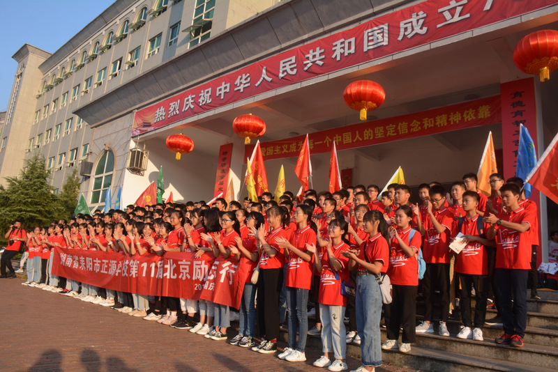 罗校长发表讲话。罗校长说,现在好多学校不敢组织远足,不敢组织夏令营,甚至不敢跑步,就担心出安全问题,有的家长还生怕孩子晒太阳,这能培养出什么人才!正源现在带你们到北京励志,以后还要带你们到美国去锻炼敢打敢拼的能力,带你们到美国去留学。从现在起,正源教育要从平民化教育上升到国际化教育。